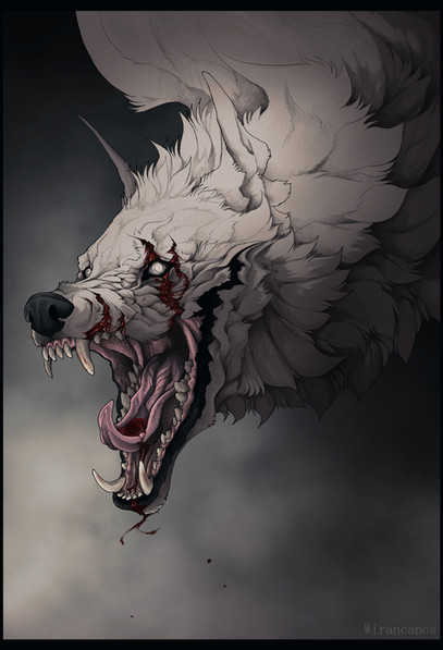 #angry #blood #canine #cold #jaw #snarl #teeth #trees #wolf #cellshading