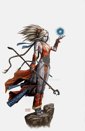 A beautiful image with a truly graceful elven character, the decoration on the dress is particularly eye catching but the marvellous concept and design in the magical hair is certainly the crowning feature of this picture for me.