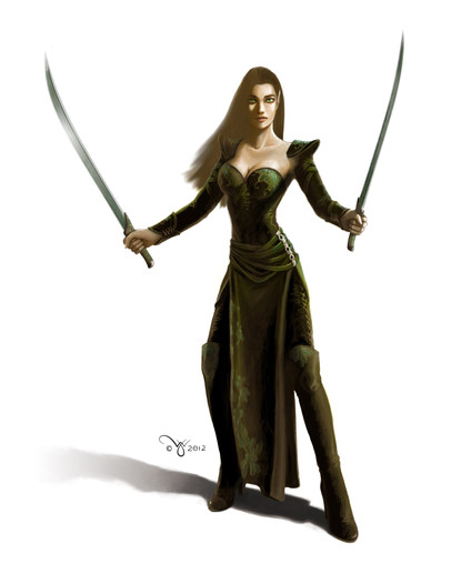 This is a good piece, I love the detail to the hair and bodice. I feel like the dress is incomplete, however, lacking the detail that I see in the top half. Everything below the waist seems a bit rushed (except the sword). But overall, I enjoyed it.
