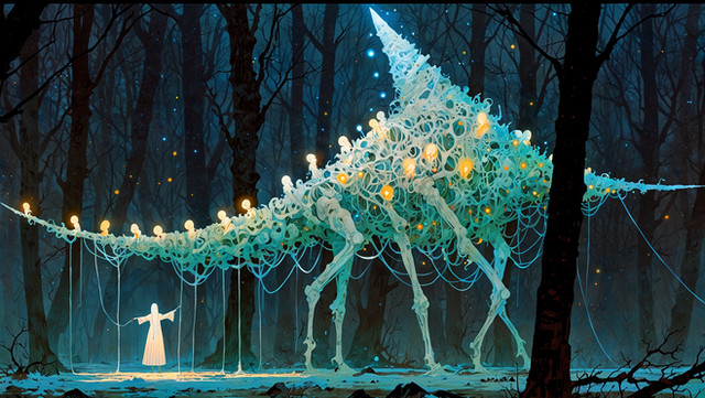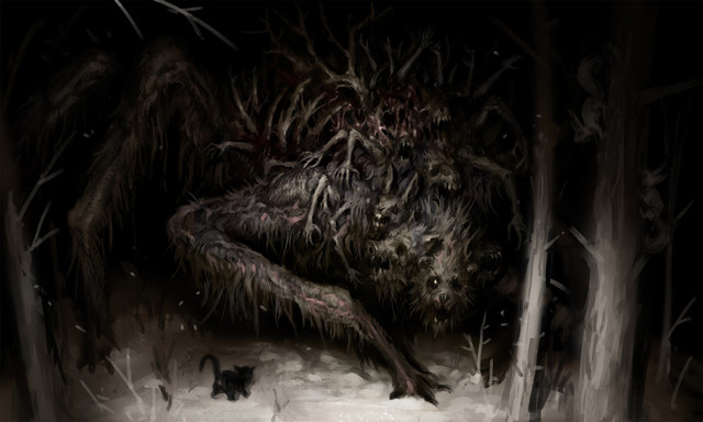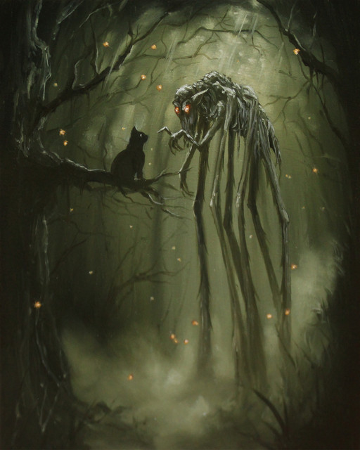 #cat #dark #clock #creature #forest #poppies #surrealism #trees