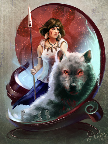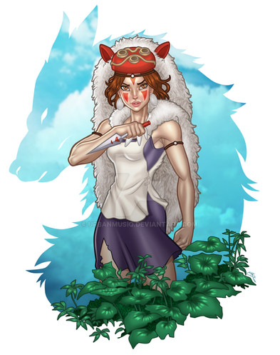 This is a great tribute to Princess Mononoke; the wolf outline is especially fitting!