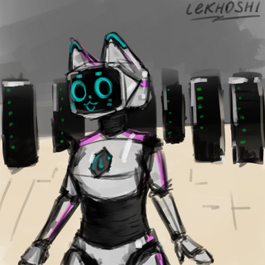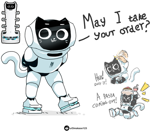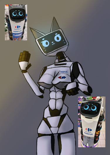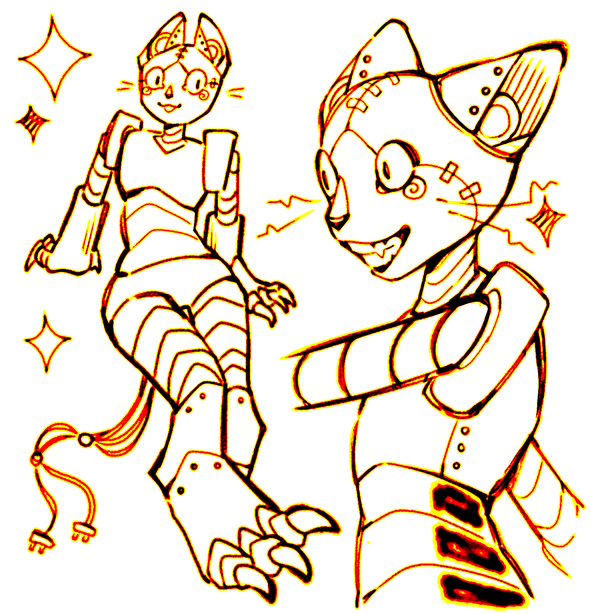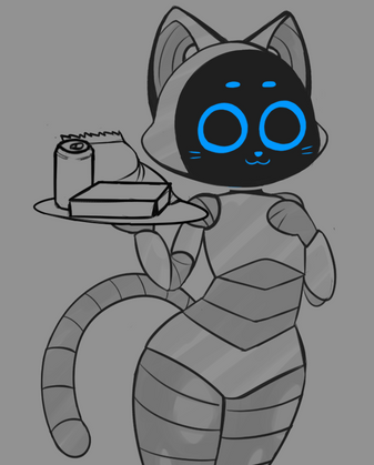 #originalcharacter #cat #robot #cyborg #humanoid #digitalart #fanart #characterdesign #referencesheet #catgirl #feline #catboy #clanker #cleaning #food #procreate #assistan #votv #kerfus