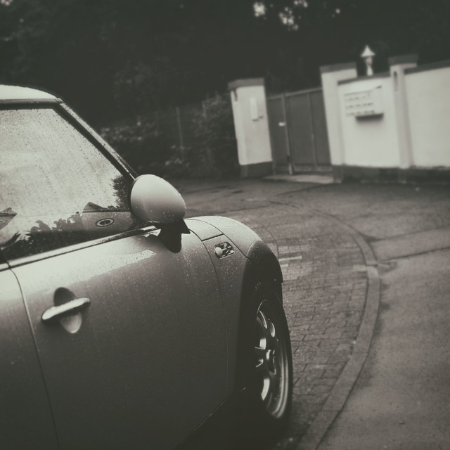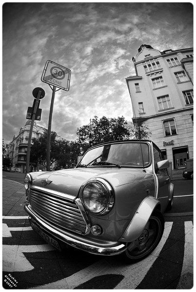 i love mini coopers too ^_^ this is a cool shot! looks nice in black and white!