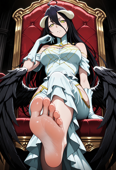 #fanart #anime #animegirl #feet #albedo #feetfetish #female #foot #footfetish #horns #overlord #soles #sweat #sweaty #wings #woman #women #animefeet #animefoot