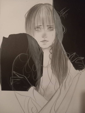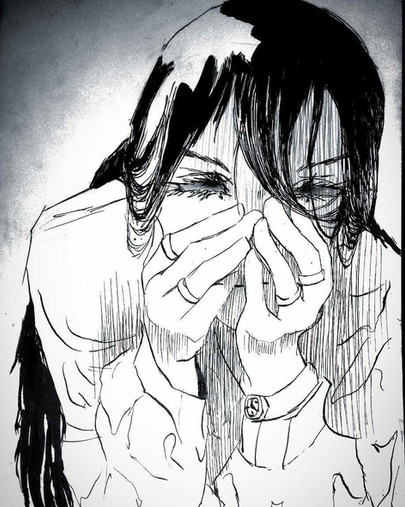 On the white area, there's a face. Like a ghost, who can't help. All can do is watch her sorrow, and feels for her. That feels like its us, watchers, and we see your sadness.
