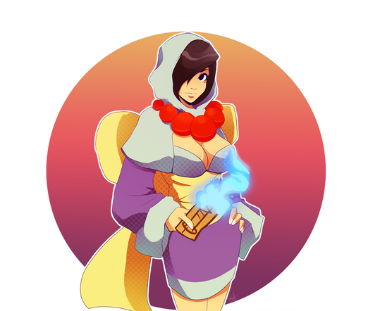 "Busty babe!" - IssunPriestess Rao from Okami, with the Ninetails moon behind her~!
