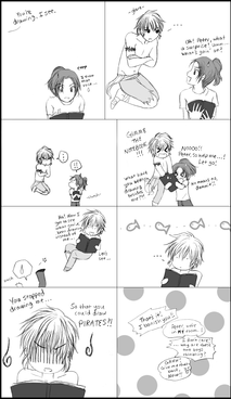 Lawl. This was so fun to make...*is such a nerd* Yes, I will have a 5k pic soon, I promise guys. *Bows head shamefully* But, I was drawing this 'fore I reached teh big 5k, so, I wanted to upload it and such...nyau. *lame* It's Pirate Aki. Again. She's just too fun to draw, even though I messed up entirely on her face. *Tried to make her look cool* *failed ultimately*...so I drew the eight items that talk to her. And she responds to. Except the ones that scare her. Which are pretty much...all of them. XD... So, yeah.