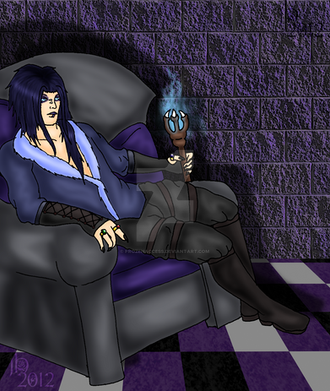 He looks amazing like how he is sitting there like a throne or something he looks ^^ and like his expression aswell