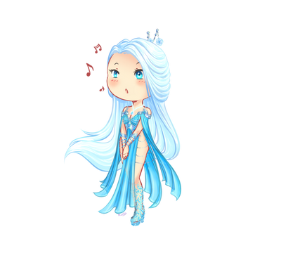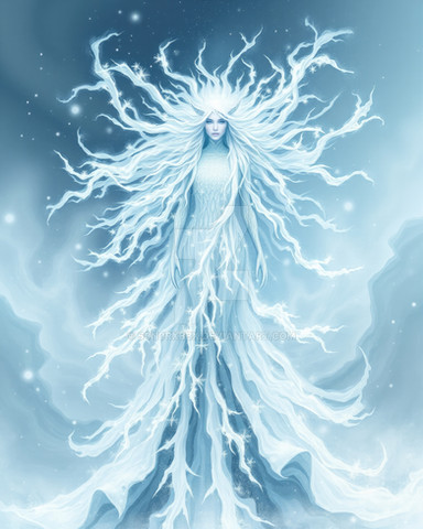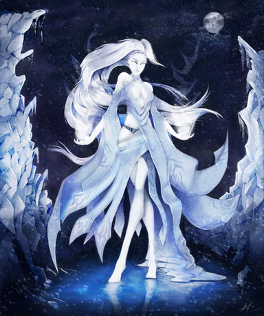 •She has sea-blue eyes and snow-white hair.