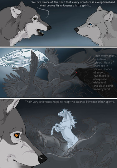 This story is AMAZING!!! I love the realism in the illustrations and how you personify the white and black spirits. If this were a graphic novel I would buy every book. From my experience with reading I have a funny feeling telling me that the white wolf spirit is Iki. I'll just have to read in order to find out.