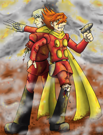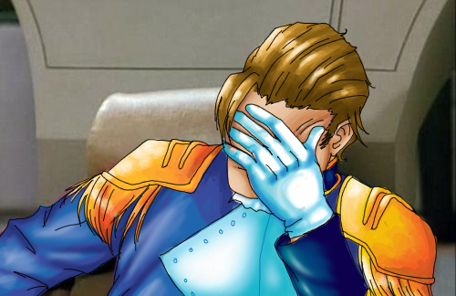 Man, thats funny! xD He, in chat speak, should be going "ohnoes!!11!! D:" ;3 I think you did the hair beautifully, so shiney and golden.