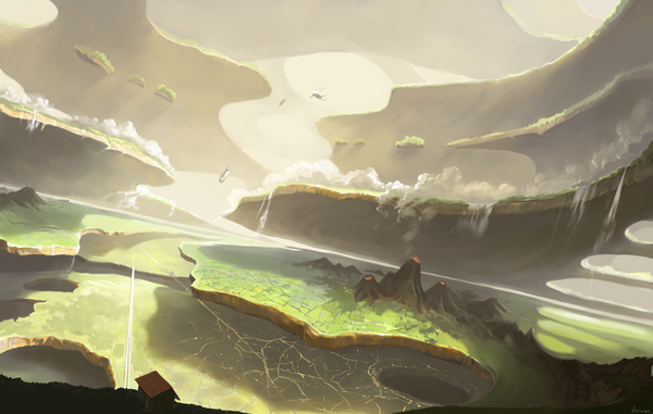 Tried to push for more vibrant colours in this one! Though I also may have overcrowded the drawing whoops.A version without the clouds circling the rocks: