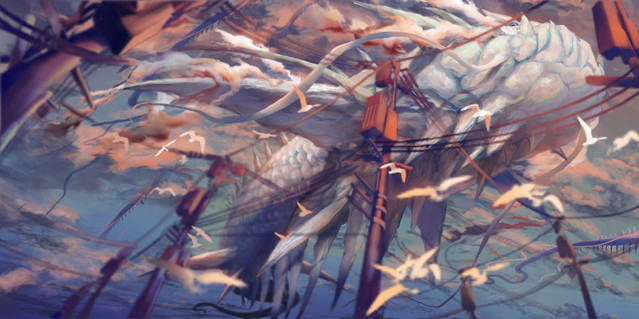 #clouds #digitalart #dragon #fantasy #floatingrocks #islands #ocean #zeppelin #funkyclouds #sixwingeddragon #sky