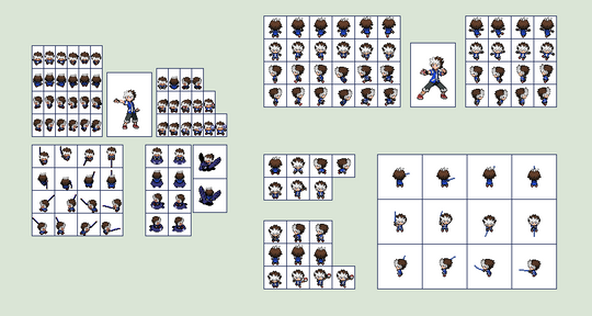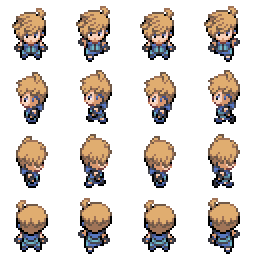A commission for Ryssy_Rys on Twitter of an overworld sprite set for one of the player characters for their Pokémon fangame.Sprites used: B2/W2 Rich Boy