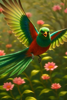 Sealedroses - A quezal bird flying in a rainforest [🤖]