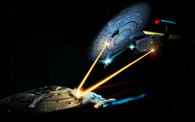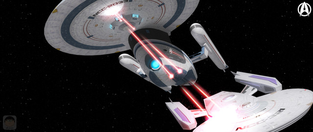 An alarm interrupts them, the small Federation ship opens fire on both vessel.