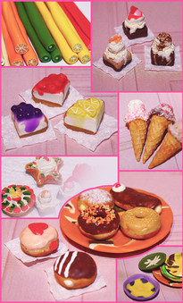 Here is my display of all of the miniature clay food I made.All of them are made with Crayola Model Magic clay. This is definitely the best clay for mixing to get the right color.
