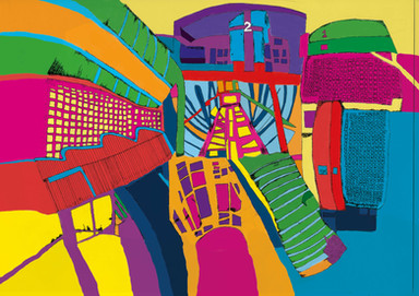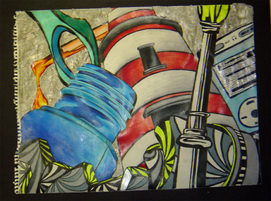 I took a photo at Times Square in NYC, and used it for this Abstract Painting project in school. I had to pick an abstract painter and follow his or her style. I followed the style of Stuart Davis: [link]Gouache on Paper.
