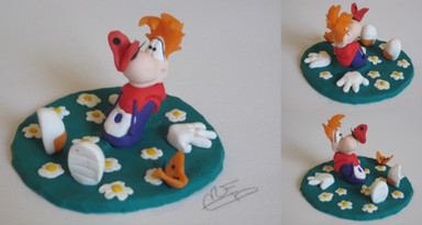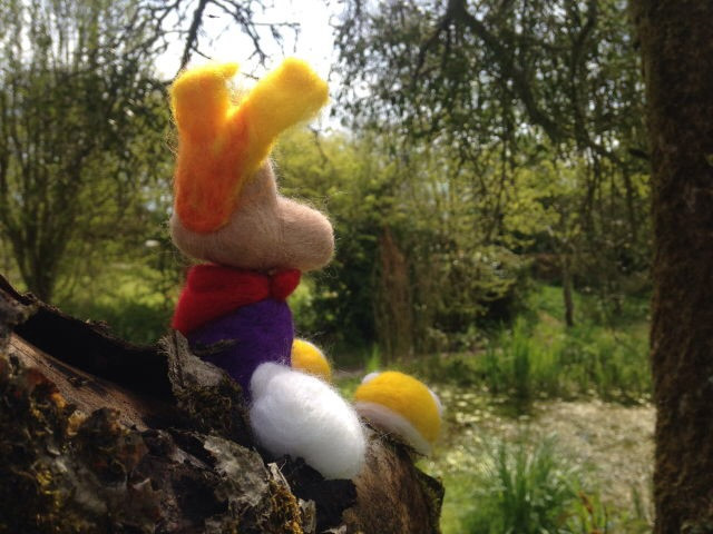 Rayman, the titular character from Ubisoft's platforming series!Digitally modeled each part separately with Blender, 3D-printed in ABS, painted with acrylics. Assembled on an an actual tree branch.