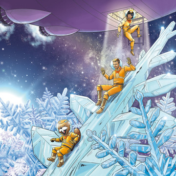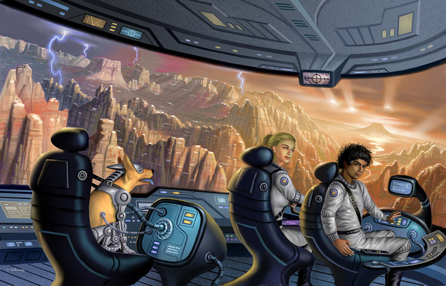 Set on the icy dwarf planet Ceres, on the outer reaches of the solar system, Grace Donner, the protagonist of the series, a former special forces operative, in the late 21st century, is with Tim, her robot dog, trying to break up a group of lab technicians on a mining operation (left), plotting nefarious activities...