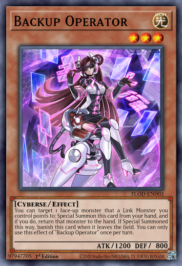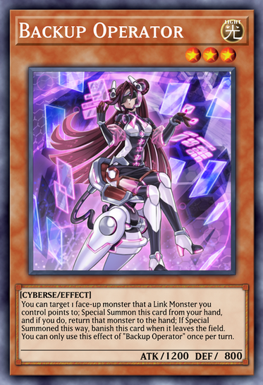 You can target 1 face-up monster that a Link Monster you control points to; Special Summon this card from your hand, and if you do, return that monster to the hand. If Special Summoned this way, banish this card when it leaves the field. You can only use this effect of "Backup Operator" once per turn.