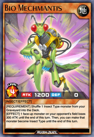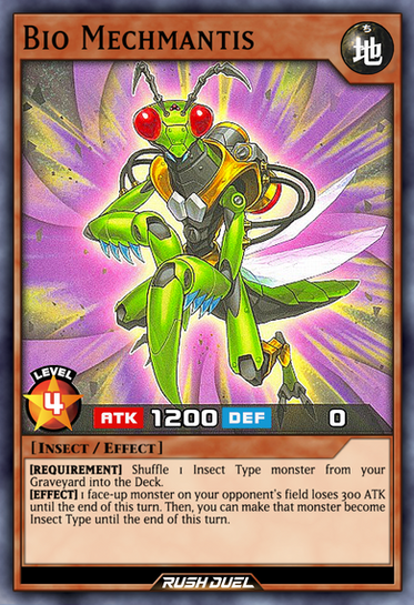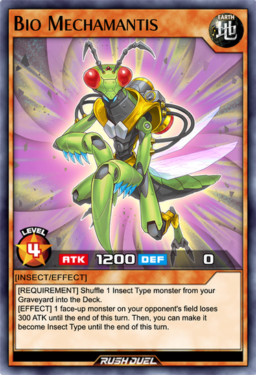 yugipedia.com/wiki/Bio_Insect_…- This card is a retrained counterpart of "Basic Insect ", equipped with "Insect Armor with Laser Cannon ".