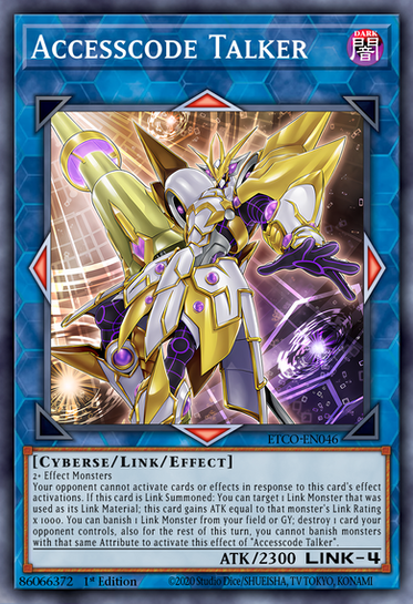 When this card is Link Summoned: You can choose unused Main Monster Zones equal to the number of monsters currently in the Extra Monster Zones; those zones cannot be used while this monster is face-up on the field. You can only use this effect of "Excode Talker" once per turn. Monsters this card points to gain 500 ATK, also they cannot be destroyed by card effects.
