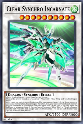 Once per turn: You can roll a six-sided die, shuffle WIND monsters from your GY into the Deck up to the result, then you can destroy cards your opponent controls up to the number shuffled, and if you do, this card gains 500 ATK for each card destroyed by this effect, until the end of this turn. During your opponent's Main Phase (Quick Effect): You can Tribute this Synchro Summoned card; Special Summon up to 2 Level 7 WIND Synchro Monsters with different names from your Extra Deck.
