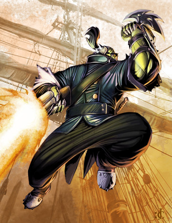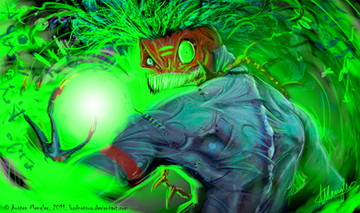 A character sketch for my latest fighter, Smog, in the ImagineFX Fightclub. He won't be getting an outing yet for a while since I've missed the latest Tournament. Follow it here [link]This started as a scribble sketch, I've posted it in my scrapbook [link]