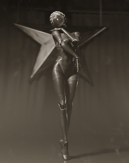 Quite old-school sci-fi. The juxtaposition of the human features so overtly dominated by the great contruct upon her head. Yet melded in such a way that her pose implies she's not encumbered by it is thought provoking. Modern fashion tends towards the invisible augmentation and so it is curious to see the effect of that mould being broken with a more modern style.