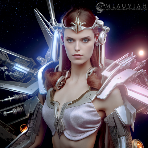 That's really cool and unique. It looks like she's wearing some futuristic suit of armor and the reflections on the metal look really convincing.