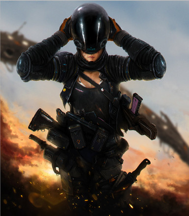 Is she an alien, her torso is really long? That aside I really like this, would be nice to see the gun better