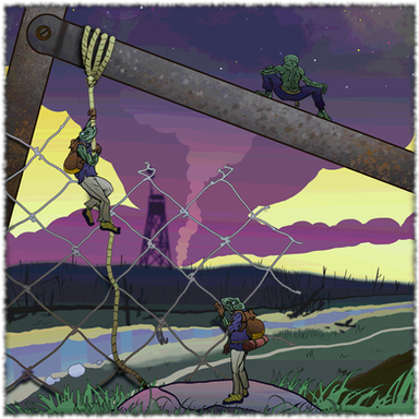 When you live in a lawless and primitive land, there's something to be said about officially staking a claim on your own little swath.Here we see a pair of brother Frog-folk working together to construct a border fence around their newly claimed homestead. They have a lot of work ahead of them, but at least they have a completed pathway, and a fence well undeway!