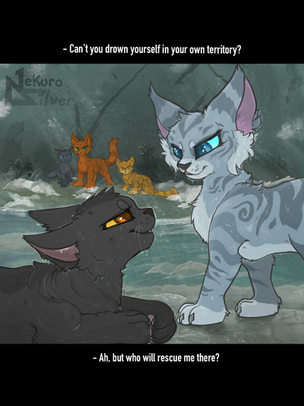 #blueeyes #drown #silvercat #water #wet #yelloweyes #warriorcatsscene #riverclan #silverstream #greystripe #warriorcats #silverstreamgraystripe #warriorcatsfanart