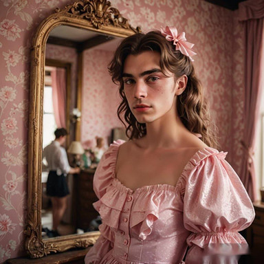 #dress #vintage #clothing #fashion #malecharacter #portrait #transformation #unisex #feminization #genderfluid #nonbinary #newageworld