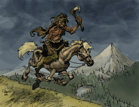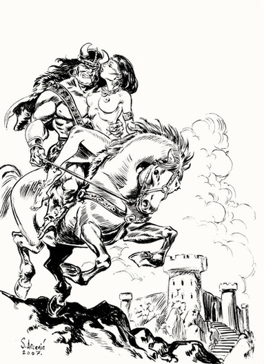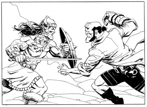 Mike Mignola, s Hellboy in his adventures met many interesting and an usual historical character. In this illustration I put Him together with Djorde Petrovic Karadjordje (Black George, this is the nickname his enemies βTurks gave to him). Karadjordje was leader of Serbian people in his fight for liberation from the Turkish tyranny et year 1804. And he vas very original and interesting historical personality who has everything that one comic book character should have.I make this illustration traditionally with pen and ink on paper and then colored it with Photoshop.