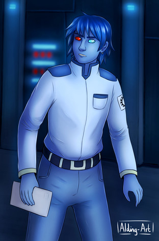 #fanart #originalcharacter #scifi #digitalart #alien #space #blue #cadet #chiss #corridor #officer #sith #star #starwars #wars #swtor #starwarstheoldrepublic