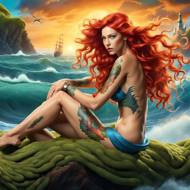 #ai #ariel #babe #beautifulgirl #beautifulwoman #body #digitalart #drawing #fabulous #fantasy #futuristic #literature #mermaid #redhead #sea #tattoo #underwater #woman #younggirl #youngwoman #boobsbreasts #dcsuperherogirls #aldothomas #andersΠ΅n