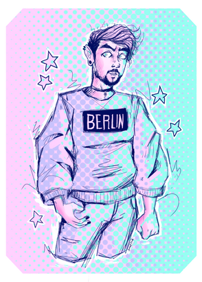 #maledrawing #80snostalgia #aesthetic #bluehair #cartoonstyle #colorfulart #colourful #cool #digitaldrawing #digitalillustration #digitalpainting #malecharacter #orange #orangeyellow #semirealism #sidecut #80saesthetic #semirealismart