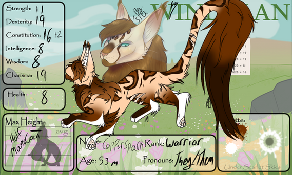- Kits: None, she does not feel the need in making kits unless she really loves someone and the person loves her just as much AND if her Clan is really in need of kits.