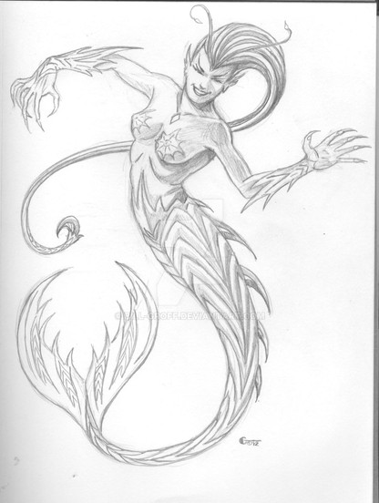 Very nice creature. I especially like how you did the fingers as well as her head tail thing. It really has that aquatic feeling.
