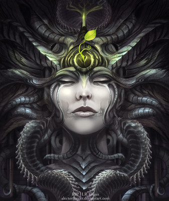This is beautiful in a slightly spooky, scary way (the feeling is caused by the look of her eyes and the spikes in her back). At the same time, she appears sensuelly exotic.