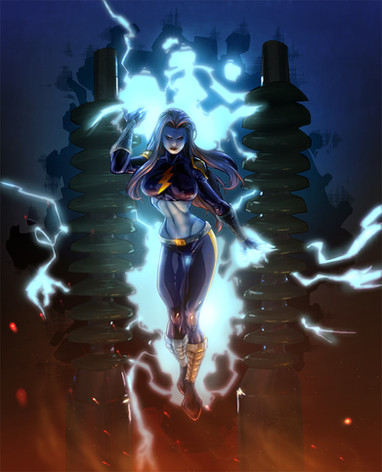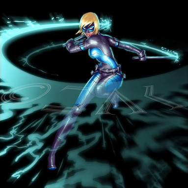 Impressive job most of all on your coloring and how splendid you are with your digital media. Her suit has that black tone to it all but kudos all the same to how well you lighting and dim shading keep it so you can still make out her details and body even with all the darkness surrounding her. Now to the biggest and most obvious centerpiece of the image, the blue glow effect. Just can`t get enough of how much your able to show the energy actually emitting perfect waves from her hands or even the way it glows with a white at the source of the waves, its just so neat to study. Same goes for how you show the blue light emitting brighter since her fingers are closer or even the way the arms and shoulders appear brighter for being closer to that same light source while the body is a bit darker.