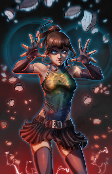 Quite blown away as one should be at this unique beauty here and tip of the hat towards not just the focus on her but the blasting action going in with her hands there. Have to admit this kind of artwork looks like something right of the artwork for a movie or video game where the visuals just literally come right at you, duck!
