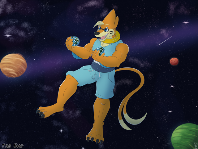 Commissioned by SaatchiIt slowly creeps onto her, the growing lady didn't expect her sensors to detect and feel such a freezing cold! Everything is quite small and far, only thing nice and big enough for Rena right now is her fluffy tail to hug and try keeping herself warm in the coldness of space!