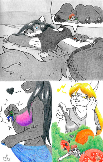 Commissioned by SturmiThe tribal wolfess exploration across new lands continues, all over there's so many small and colorful things that flash and move and look so curiously pretty to her!