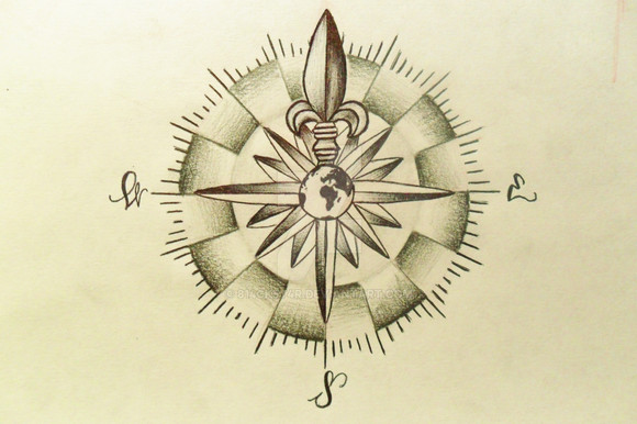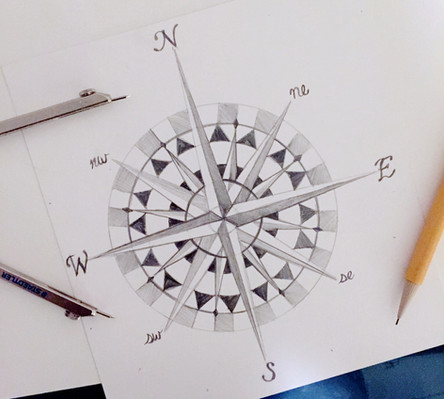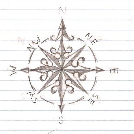 The compass rose would be the letter O, and its ends is if the other letters.