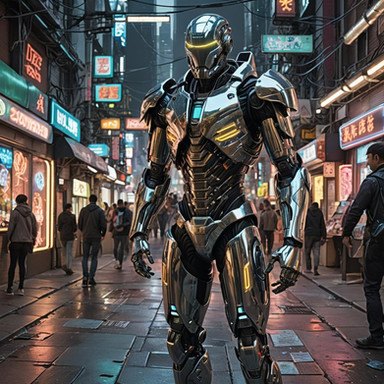 #backdrop #cybernetically #displays #enhanced #futuristic #holographic #human #lighting #limbs #medium #nostalgic #robotic #shot #style #surrealism #filmic #look #art
