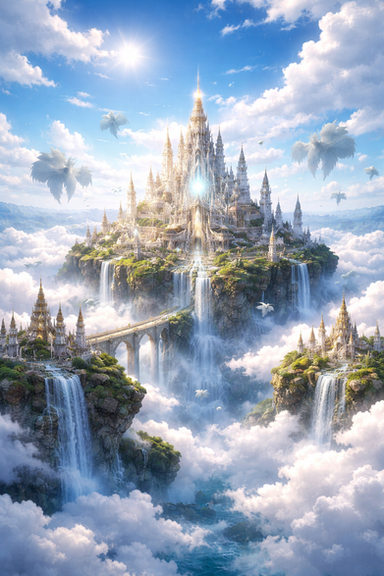 #artwork #books #cascading #clouds #concept #digital #dreamlike #fantasy #landscape #libraries #scenery #sky #sunlight #surreal #surrealistic #through #art #illustration