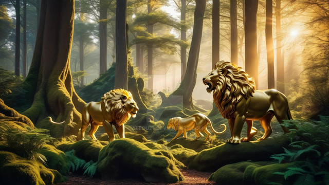 #creatures #digital #fantasy #forest #illustration #lion #magical #surrealism #art #armor
